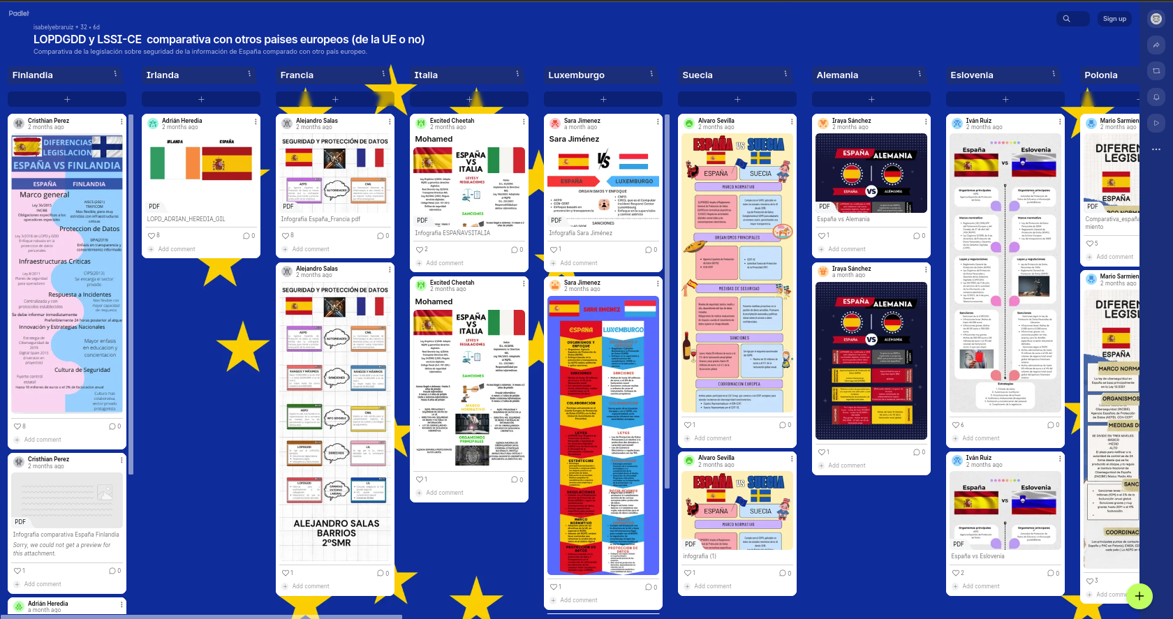 Un grupo de estudiantes de 2º ASIR a través del módulode "Seguridad y alta disponibilidad" han investigado cómo se protege la información personal en diferentes países europeos creando para ello un padlet colaborativo. Han comparado la ley española con otras leyes de otros paises europeos, analizando similitudes, diferencias y niveles de seguridad. Para que todo el alumnado fueraconocer de todas las investigaciones, se procedió a hacer una exposición de todas las infografías en clase.
